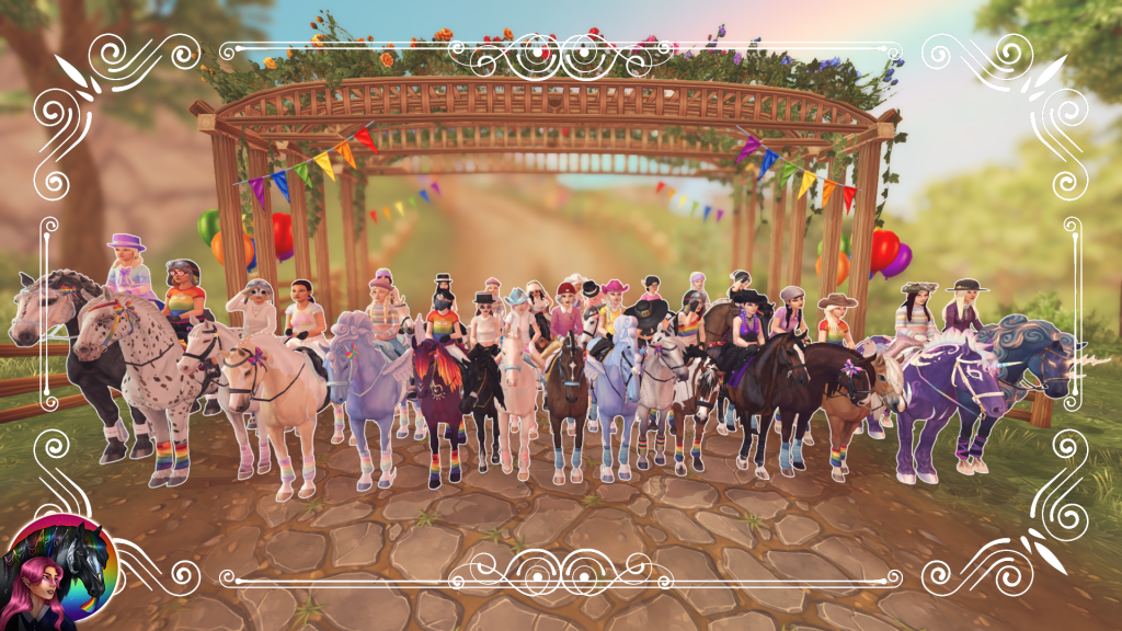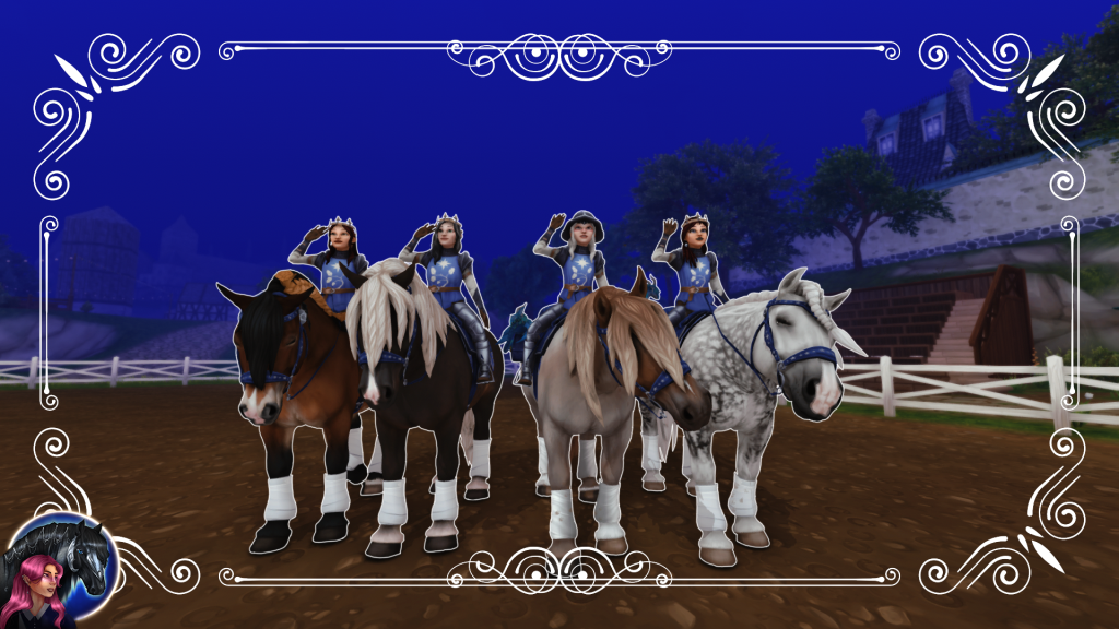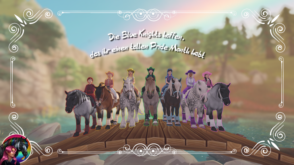 Blue Knights Pride Month 2020 Pride Month 2021 Pride Month 2023 Pride Month 2024 erster Geburtstag zweiter Geburtstag als Winter Schnitzeljagd Afina Dressage Event Modenshow und Ostereier suche der Diamond Cobras Halloween Levelrunde der Heroic Guards Murder Mystery Abend mit den Heroic Guards Abschluss Bild des Murder Mystery Abends Jubilaumritt der FHN Pride Month 2024 Offene Levelrunde Star Ocean Dressage Turnier Star Ocean Dressage Siegerehrung Lightning Sisters Turnier